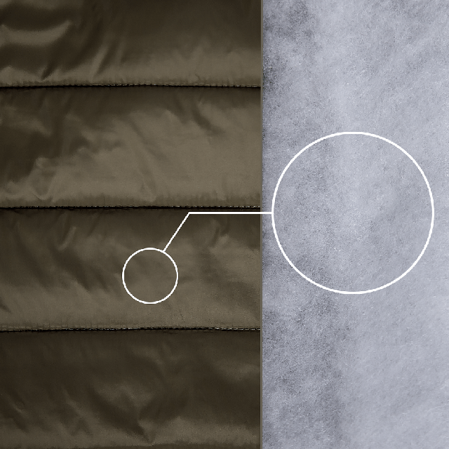 Зовнішній шар — нейлон із вологостійкою просочкою, що захищає від вологи, вітру та бруду.